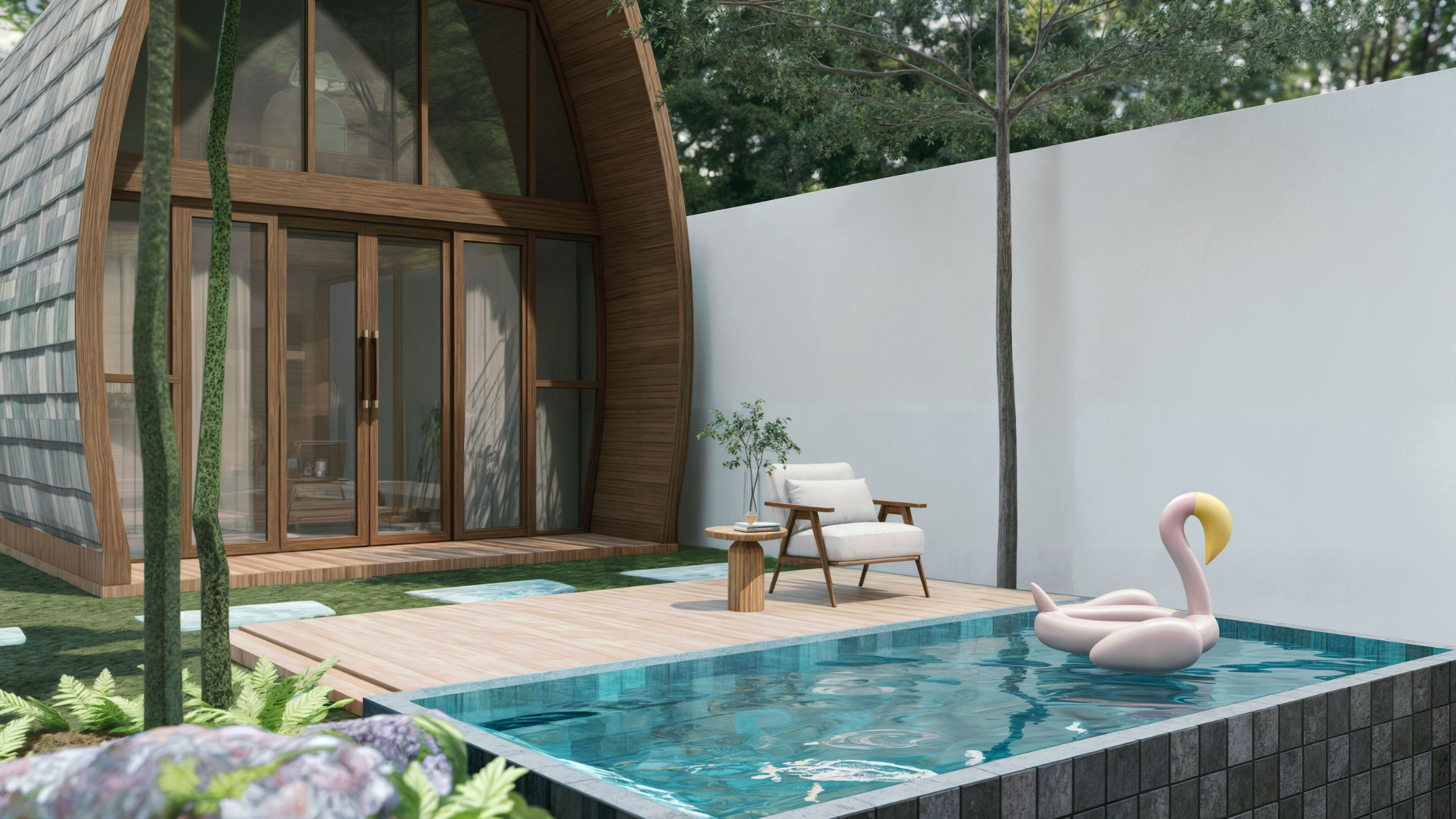 - Infinity Private Plunge Pool: A natural green stone pool of 4m (L) x 2m (W) x 1.5m (D), featuring a wooden deck.