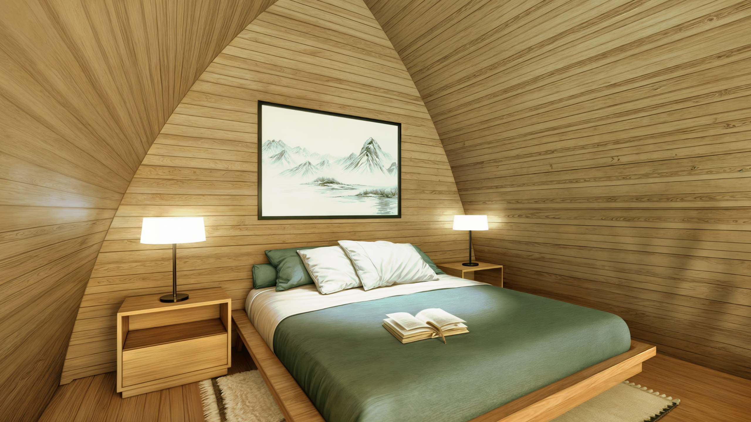 - Living room: Comfortable living space with a 43" digital TV, mini fridge, hot water, and stylish furniture.